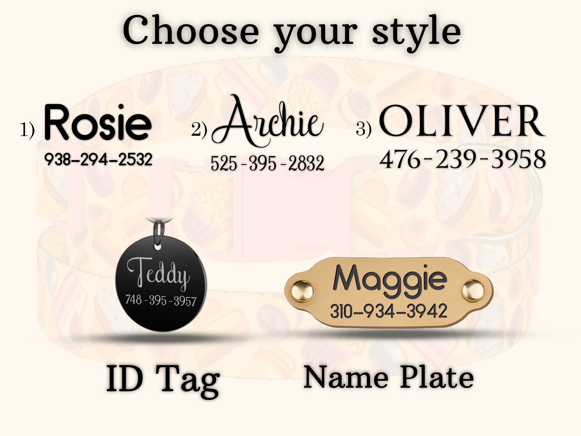 We can engrave any information of your choice on the metal buckle, such as pet's name, phone number or any other message.