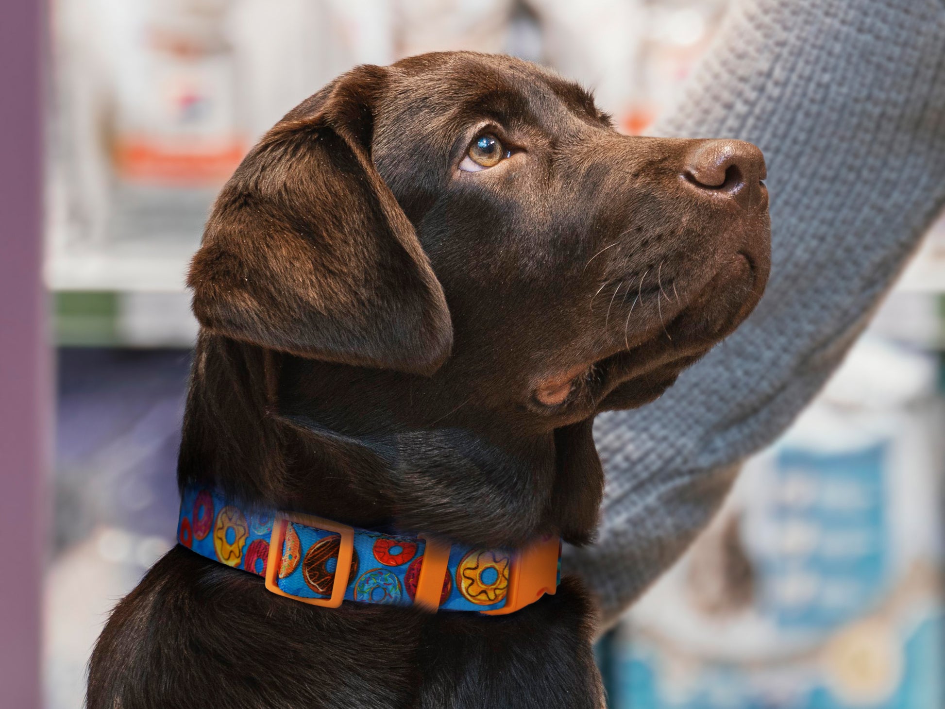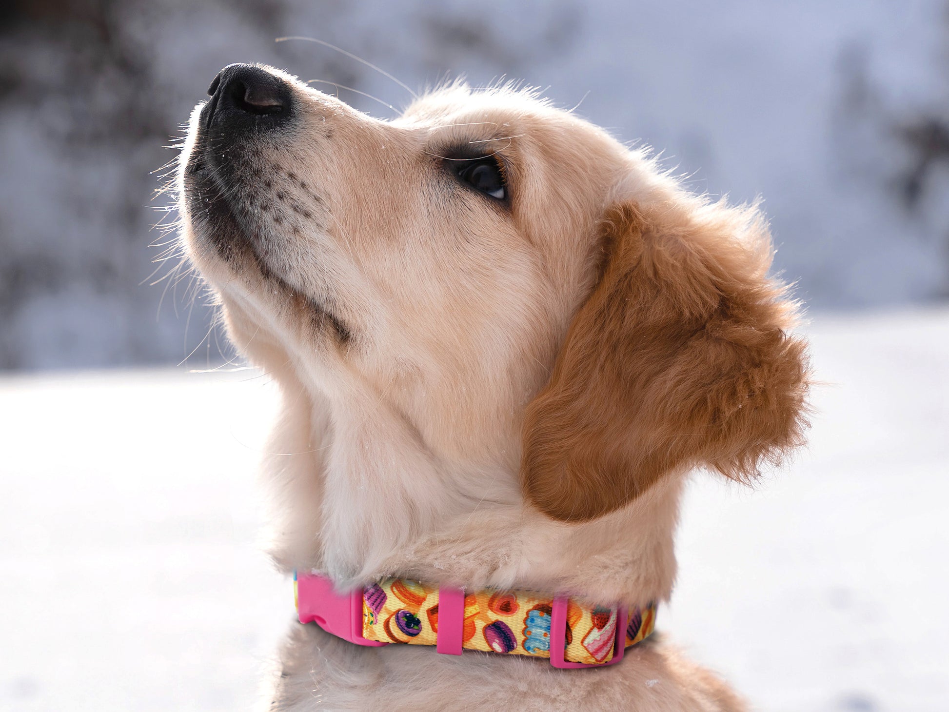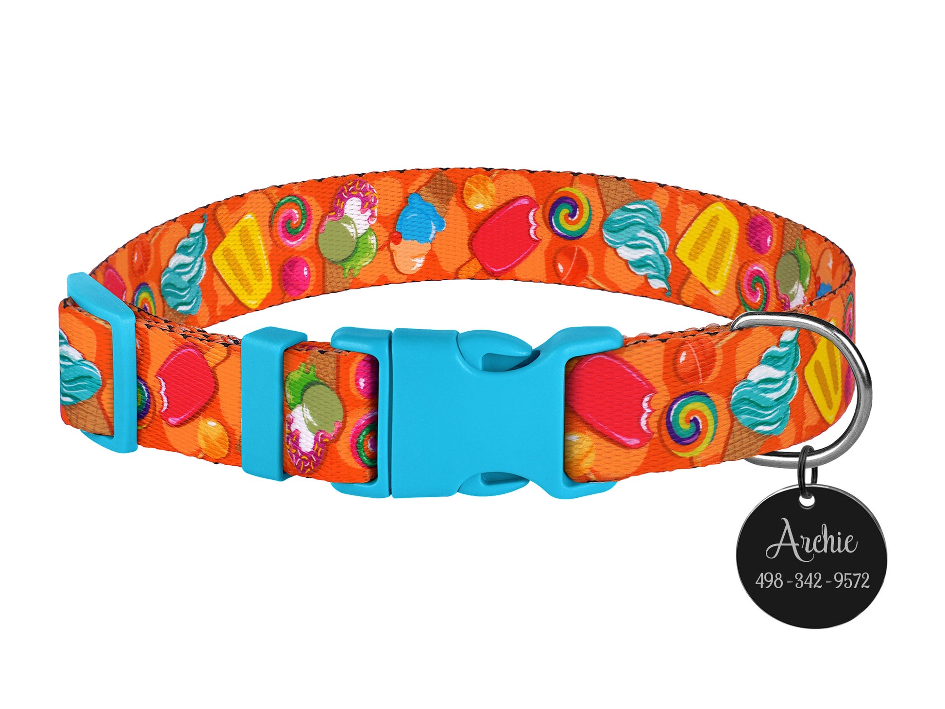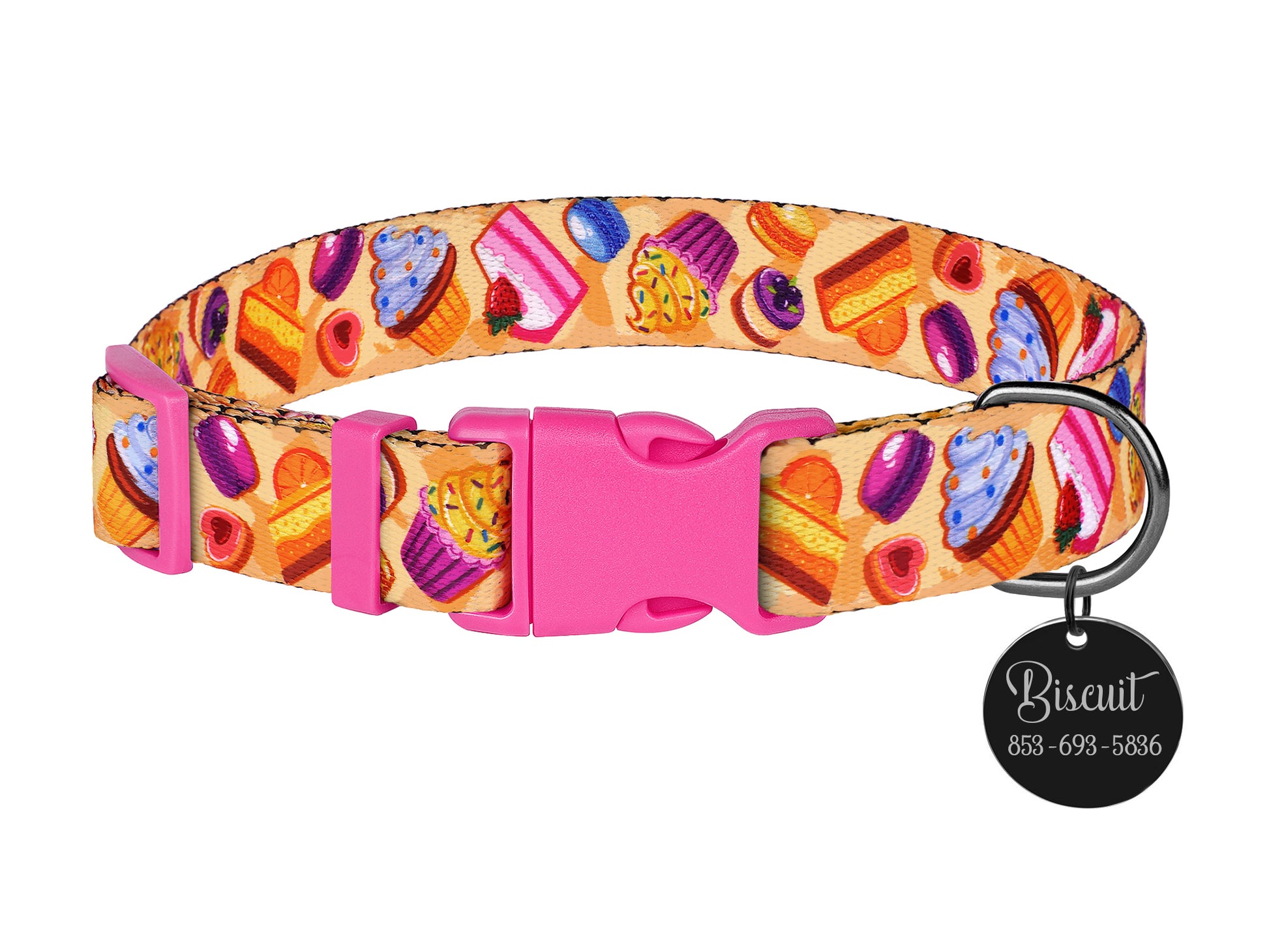 This dog collar is made of print nylon. Our adjustable dog collar combines comfort and unique vibrant design. It is a durable, soft and comfortable dog collar. This pattern dog collar is suitable for small, medium and large breeds.
