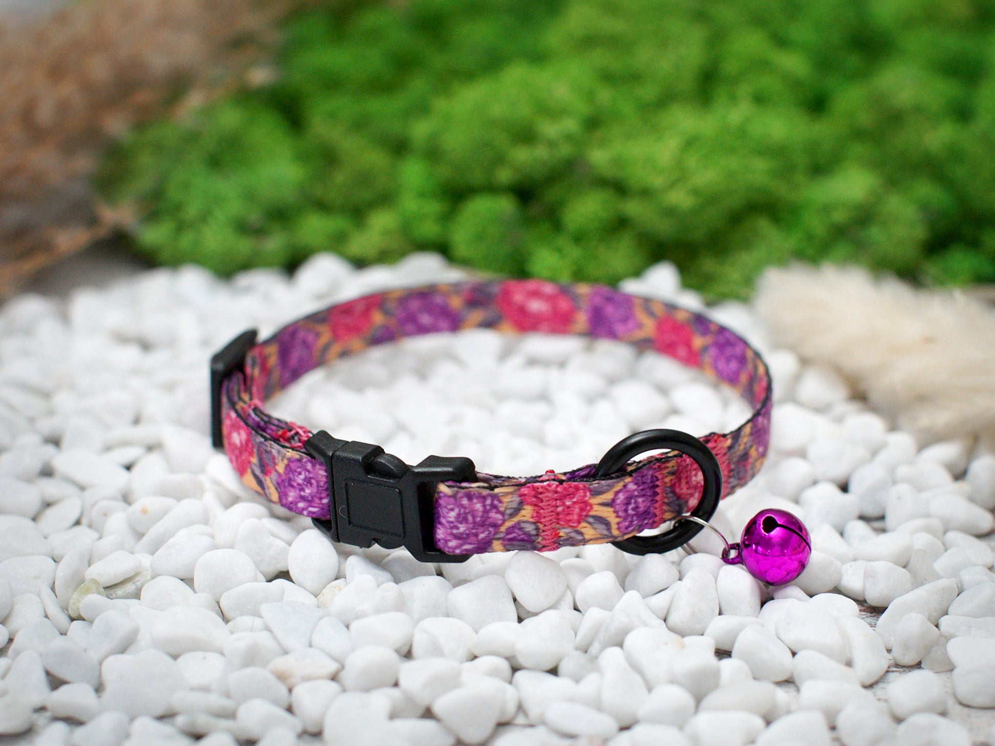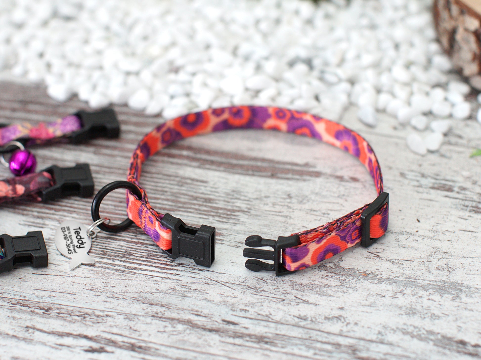 This pattern cat collar is made of print nylon and breakaway plastic buckle. Our adjustable cat collar combines comfort and unique vibrant design. It is durable, soft and comfortable cat collar.