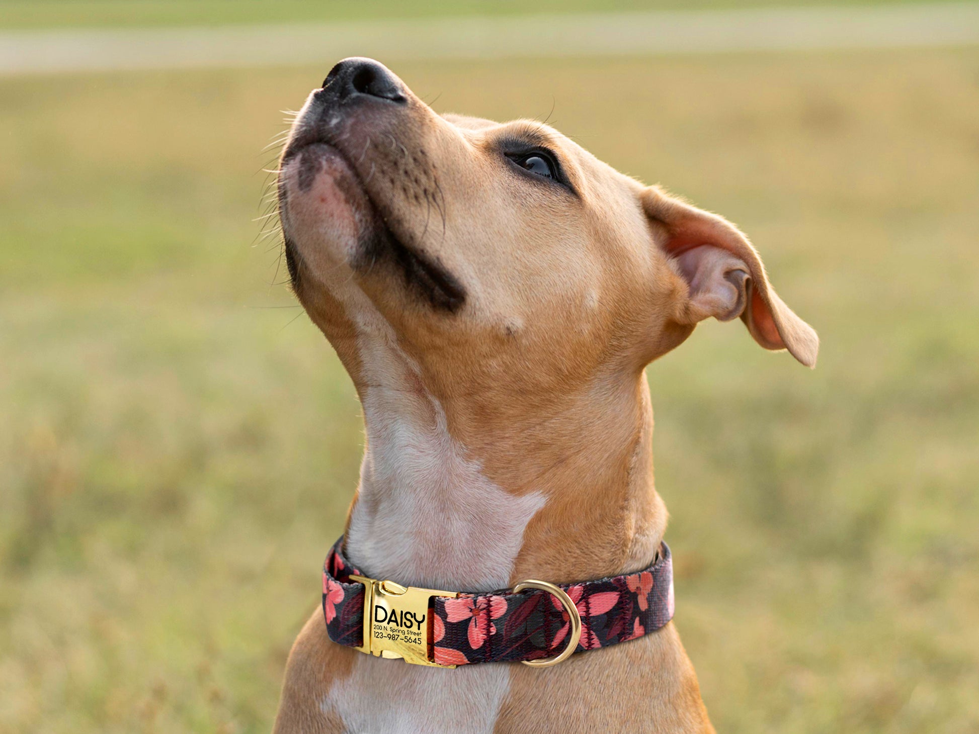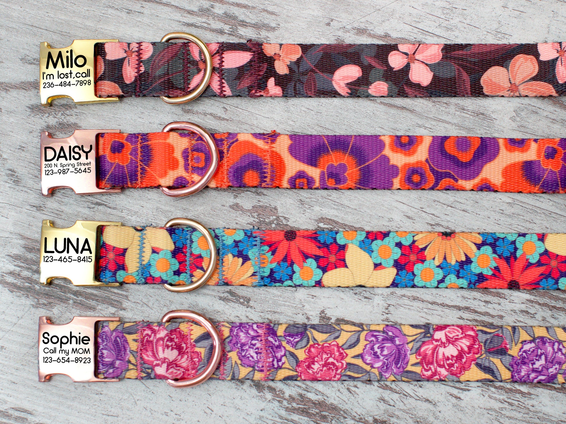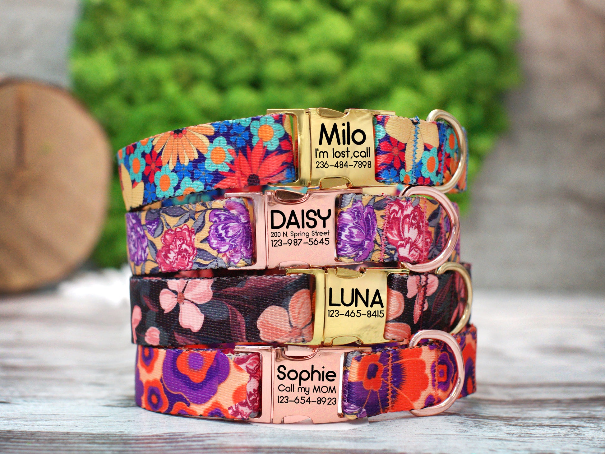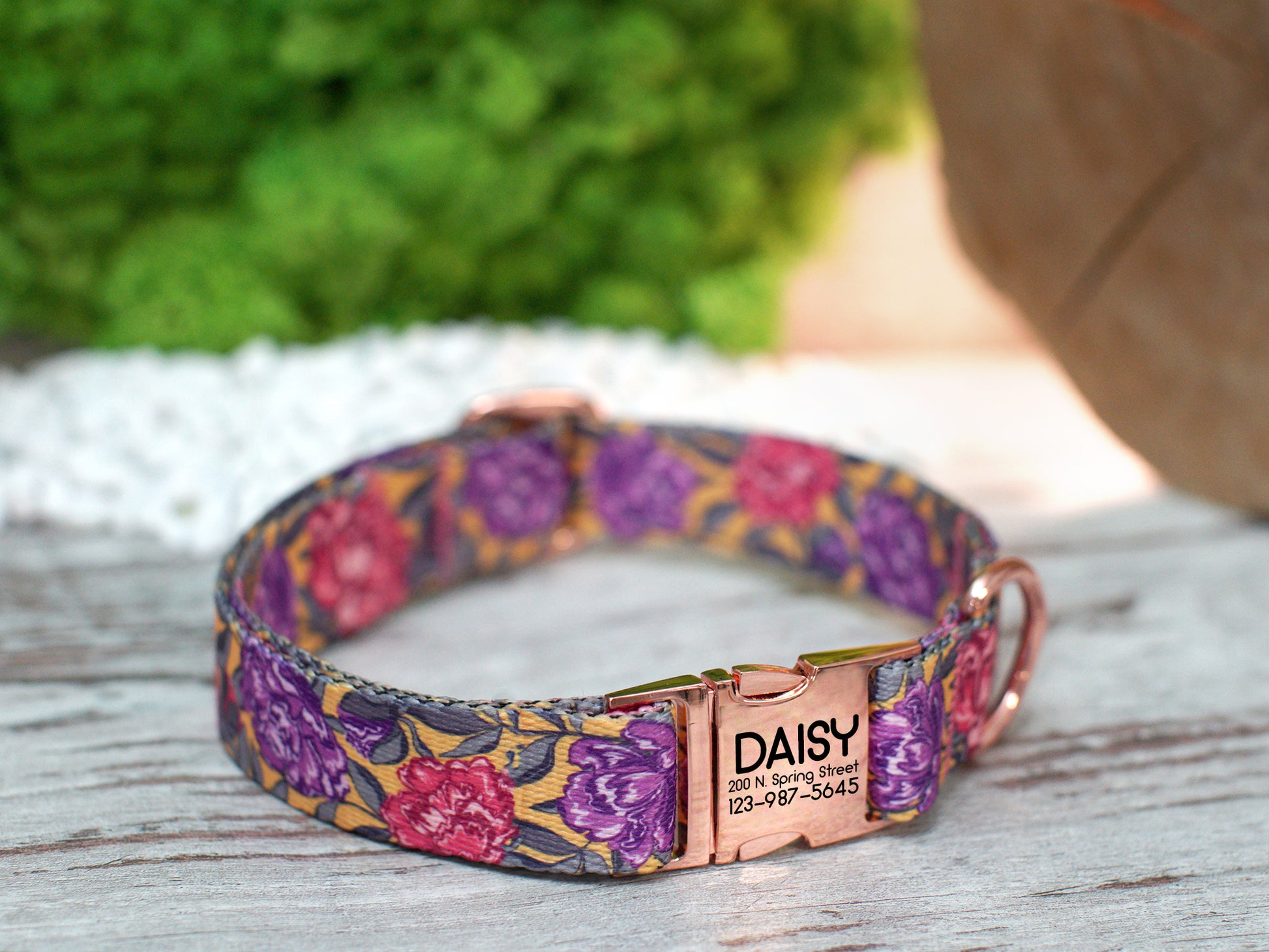 We can engrave any information of your choice on the metal buckle, such as pet's name, phone number or any other message.