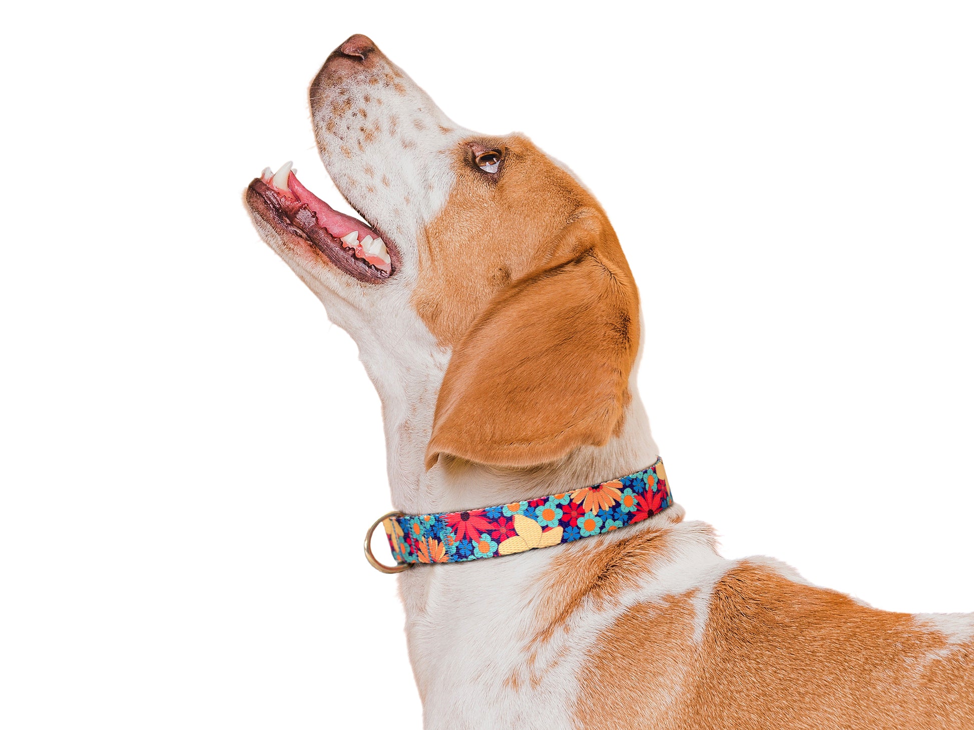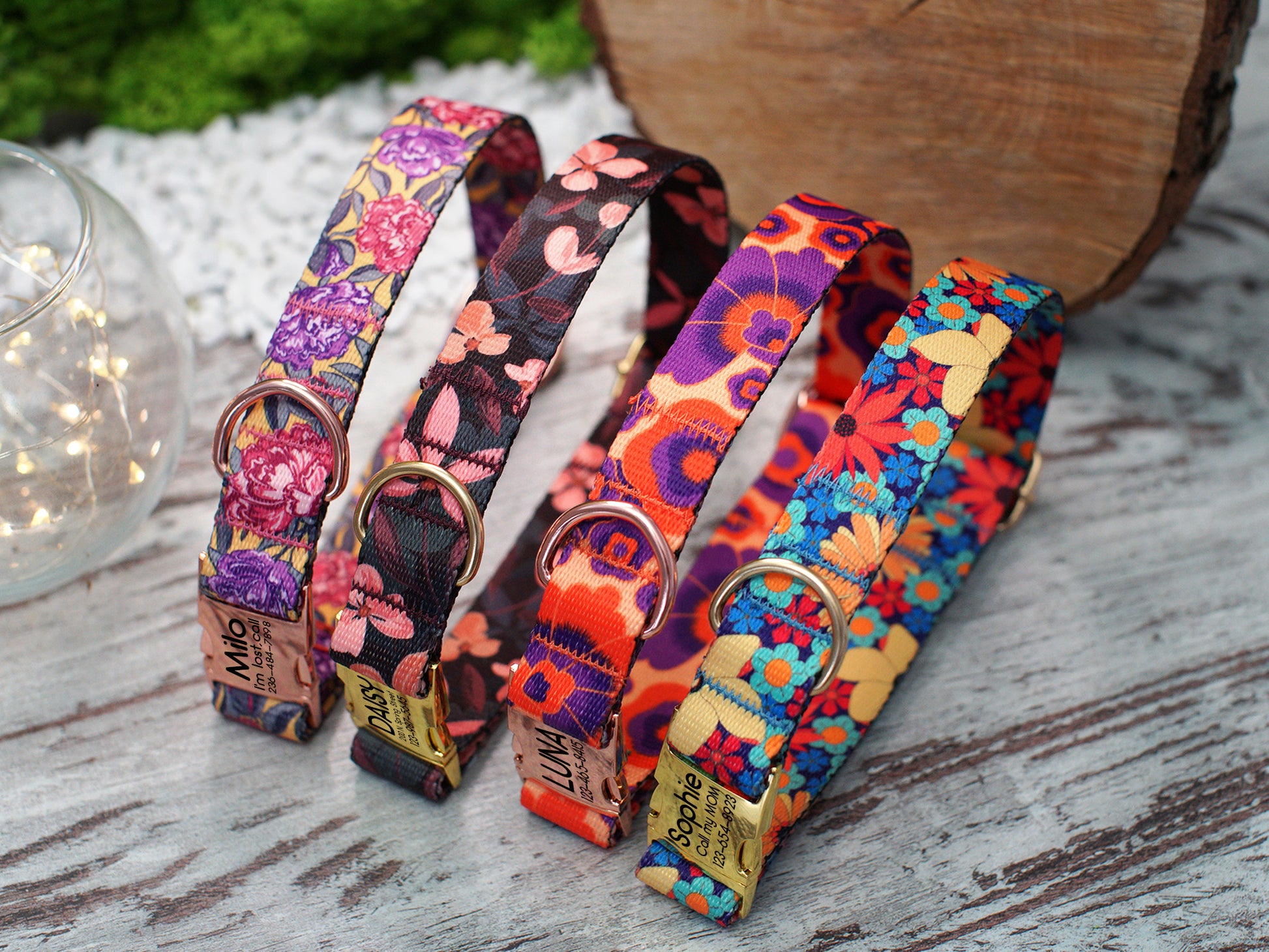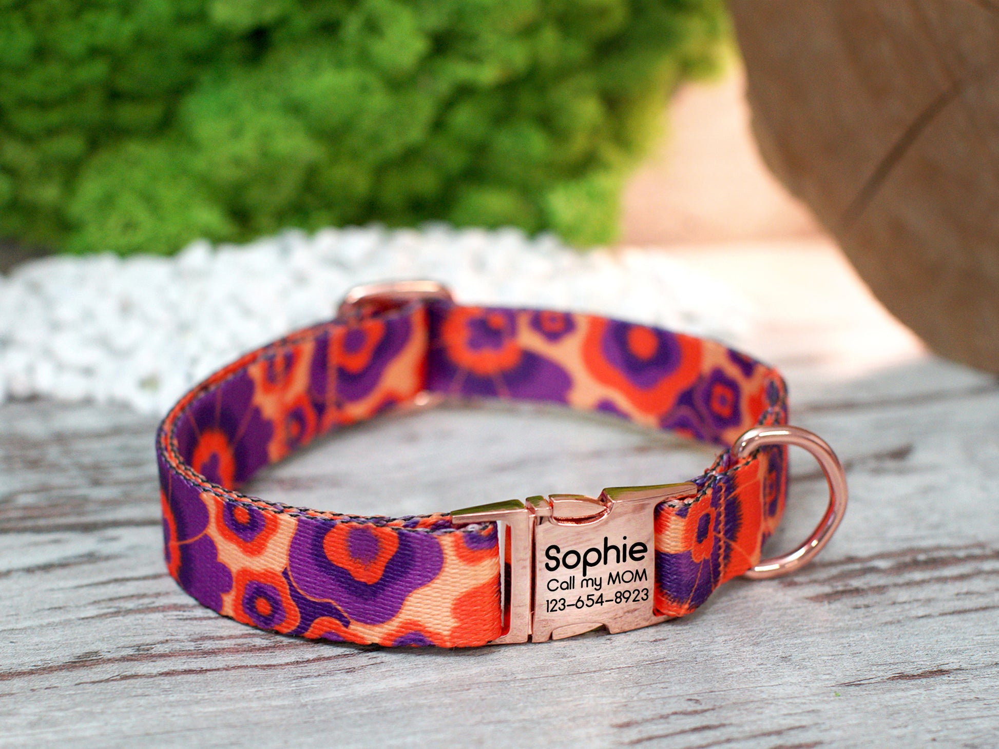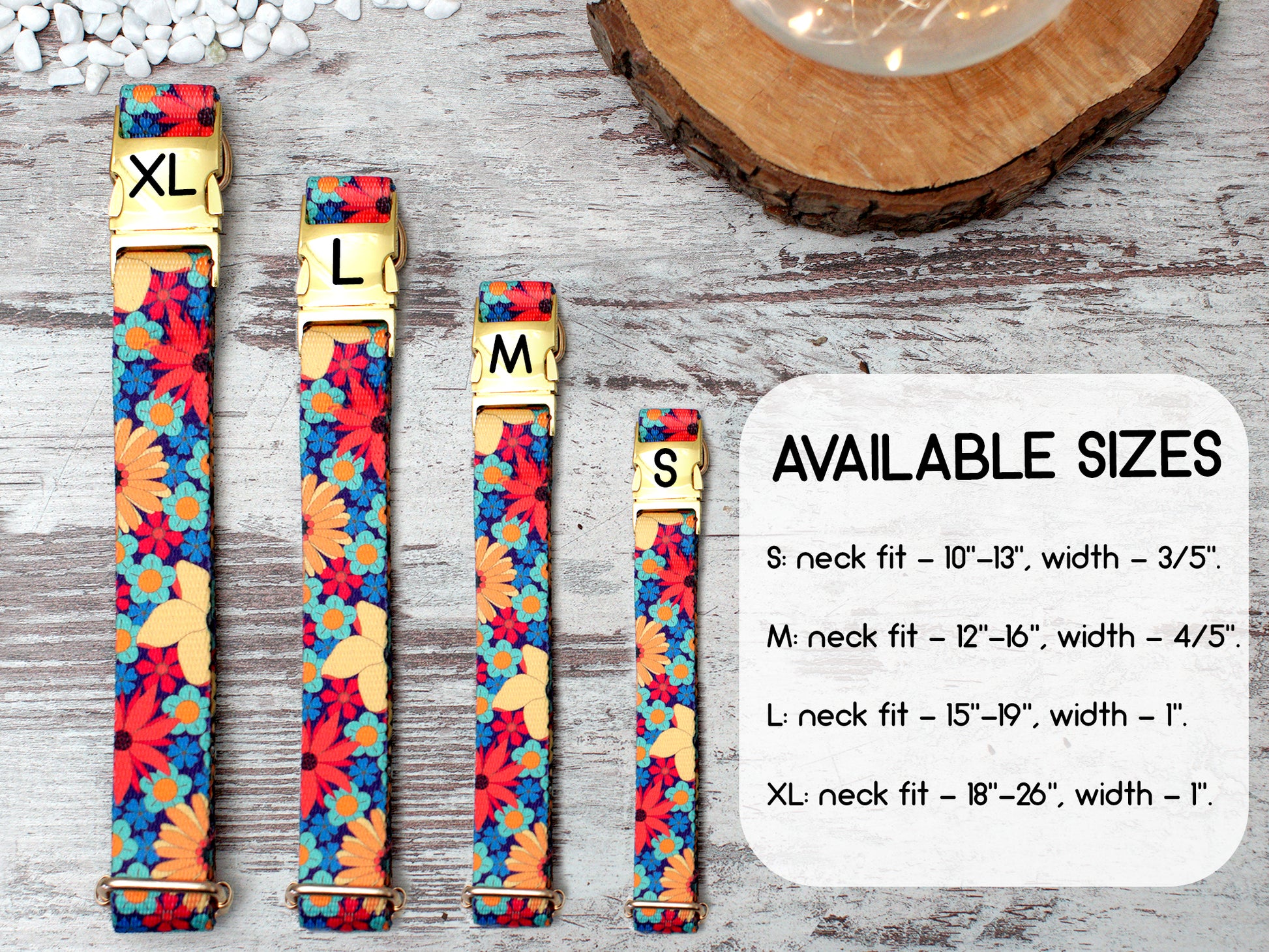 This dog collar is made of print nylon. Our adjustable dog collar combines comfort and unique vibrant design. It is a durable, soft and comfortable dog collar. This pattern dog collar is suitable for small, medium and large breeds.
