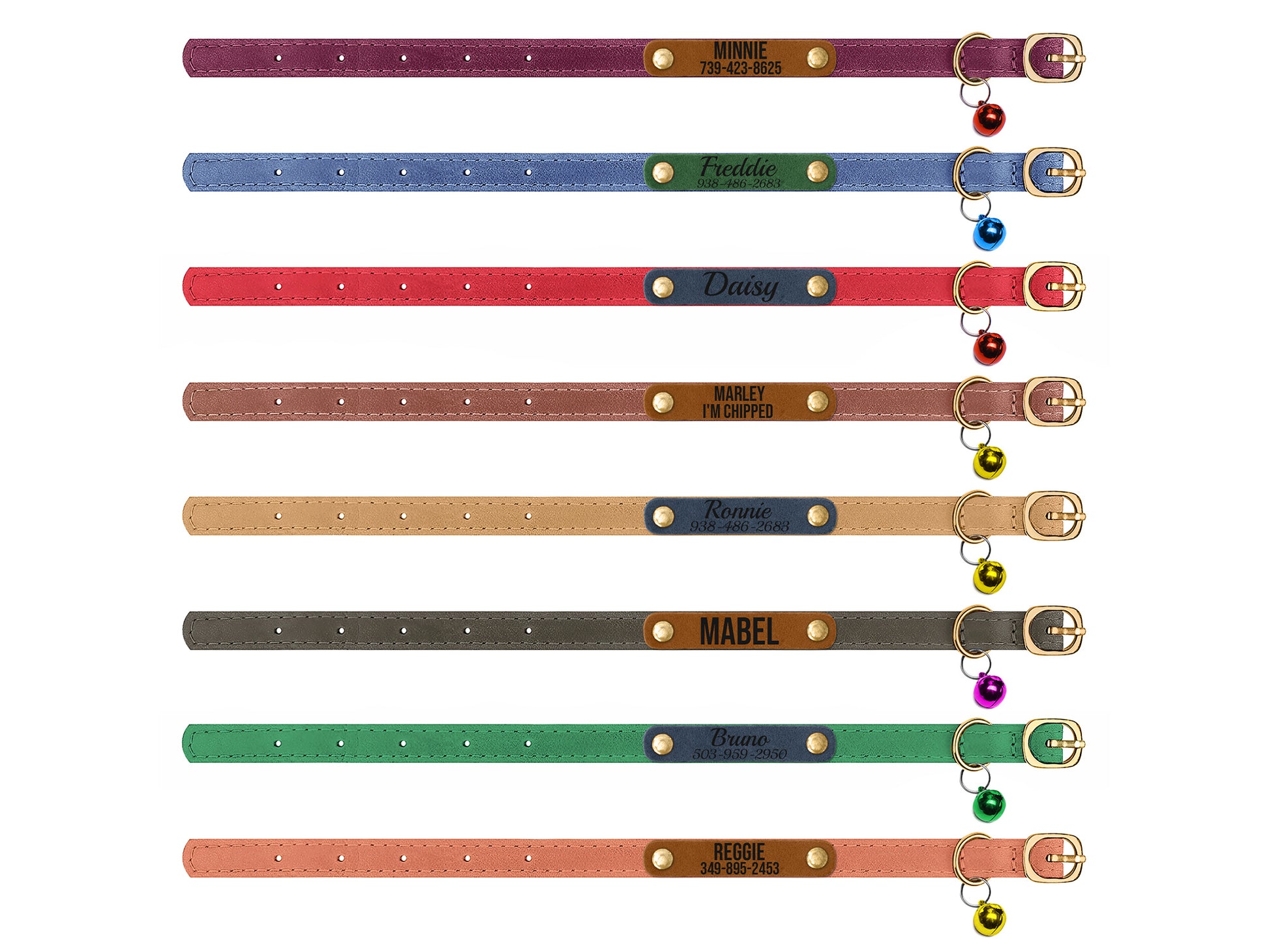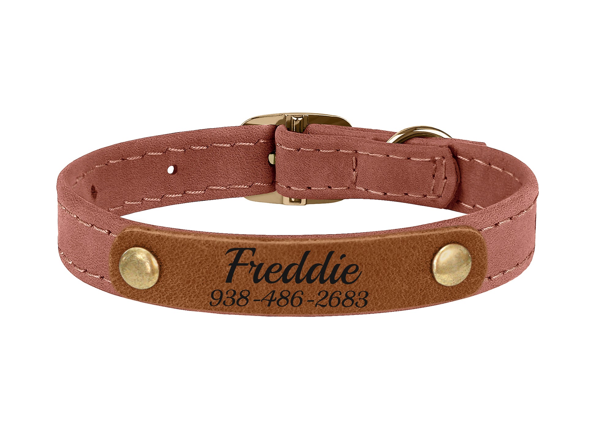 The leather cat collar is equipped with a metal buckle and well-stitched quality leather. The engraved cat collar is soft and comfortable. Personalized collar with name and your phone number will make your pet feel special and you are safe.