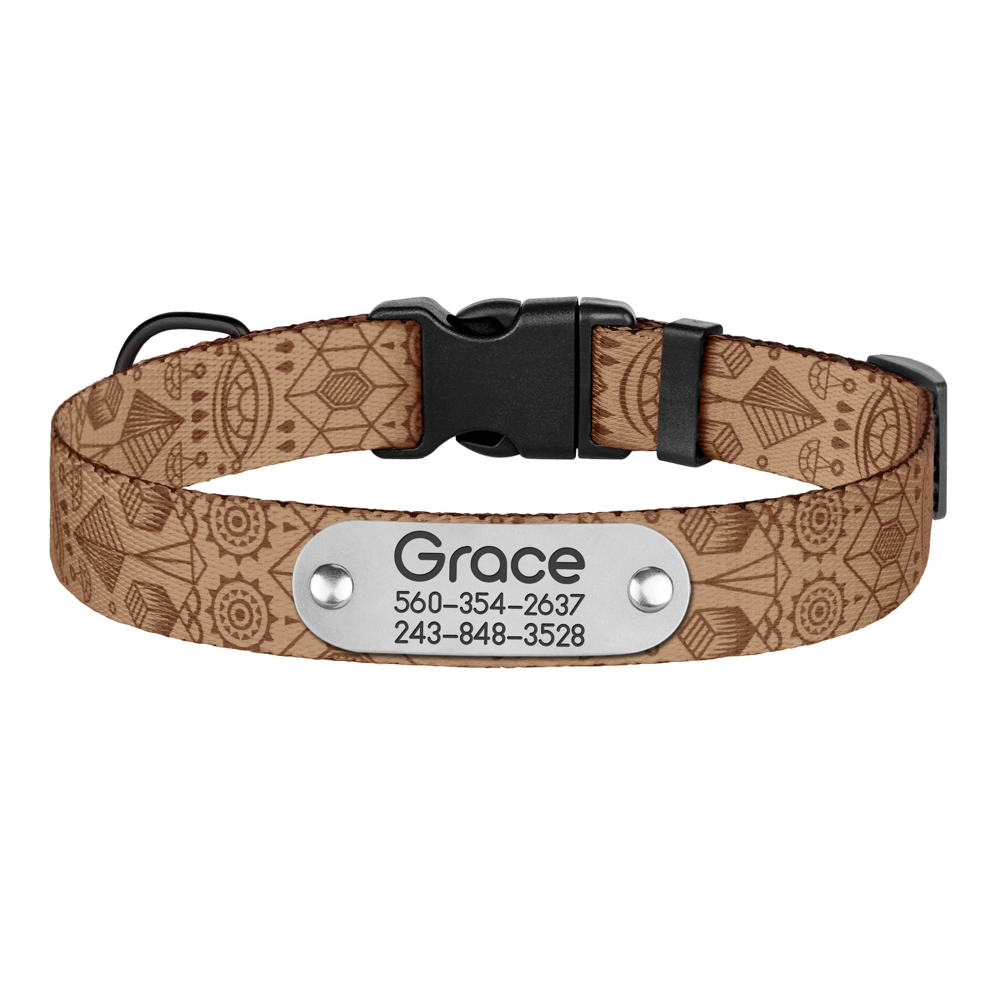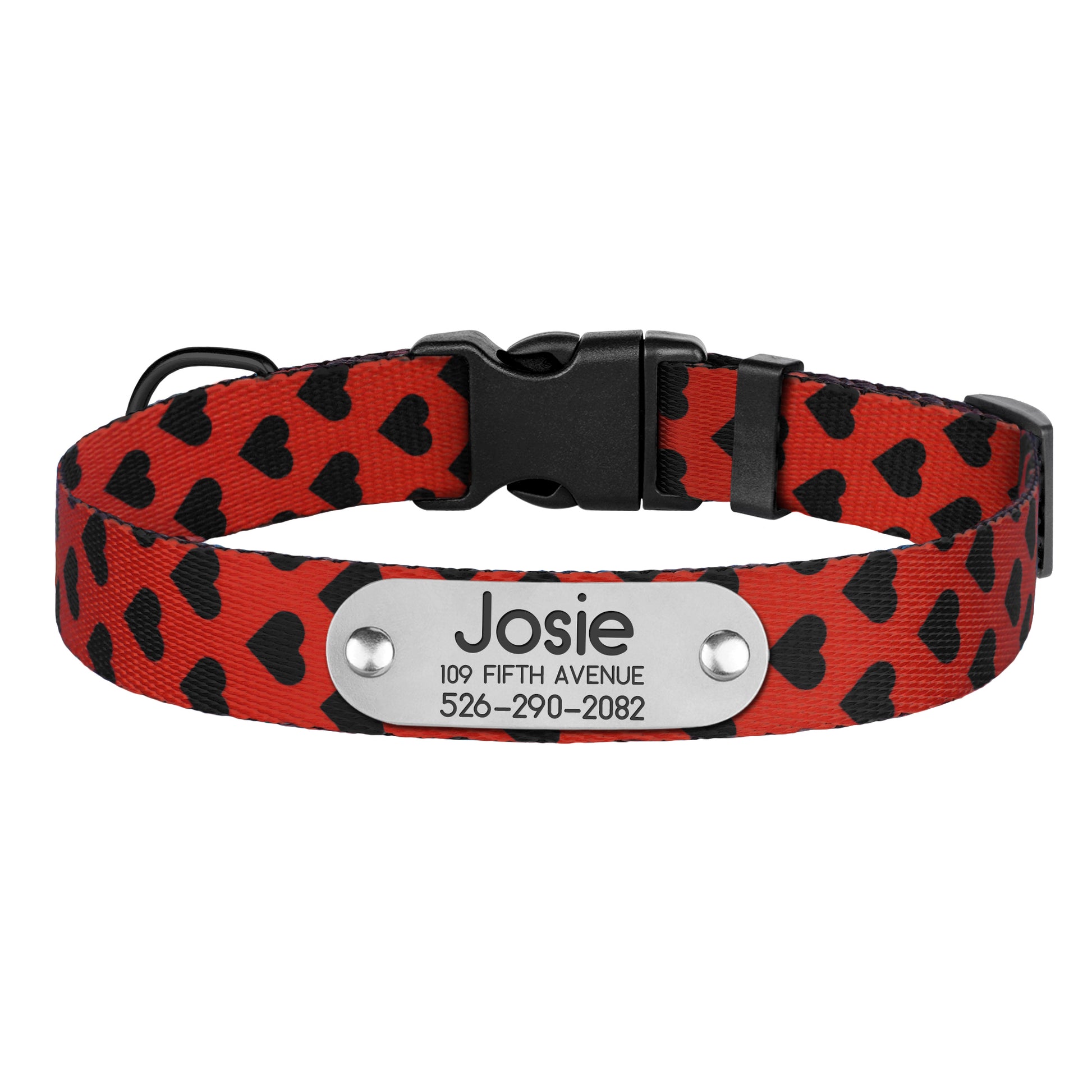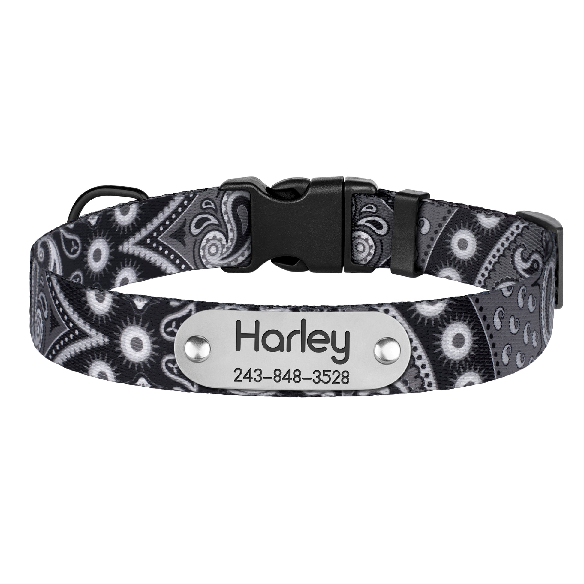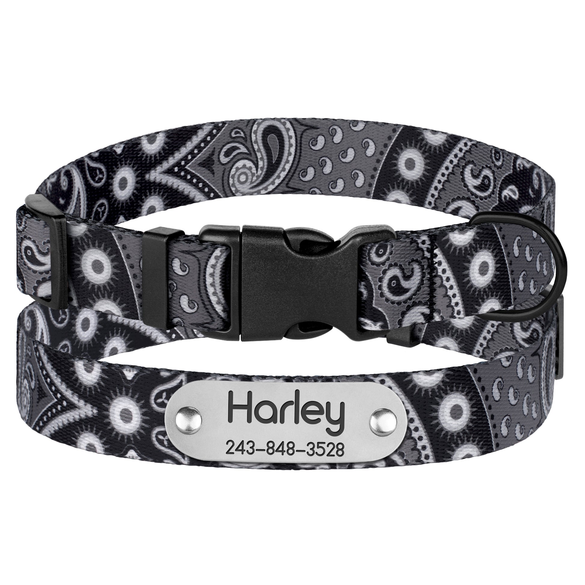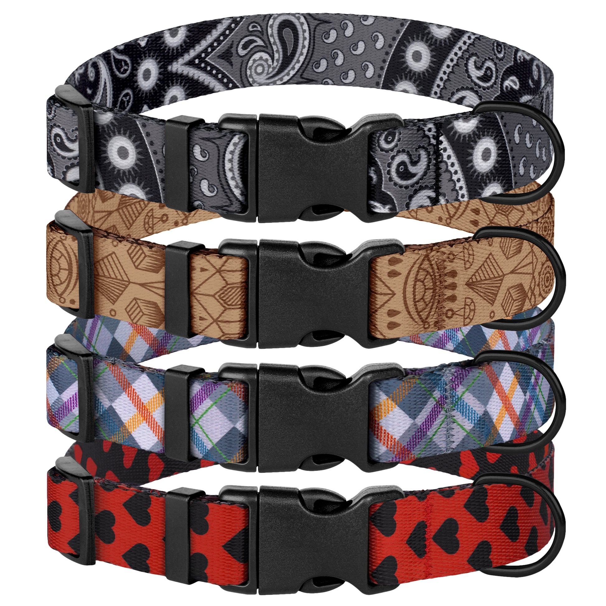This dog collar is made of print nylon. Our adjustable dog collar combines comfort and unique vibrant design. It is a durable, soft and comfortable dog collar. This pattern dog collar is suitable for small, medium and large breeds.