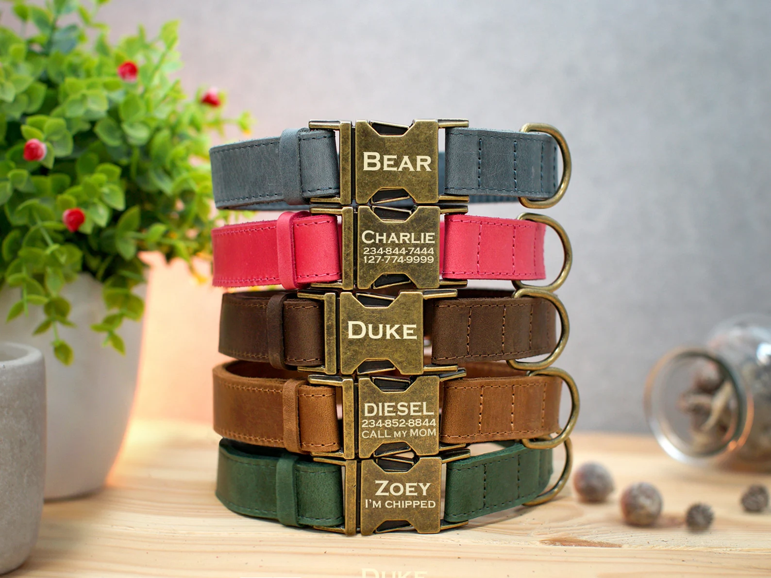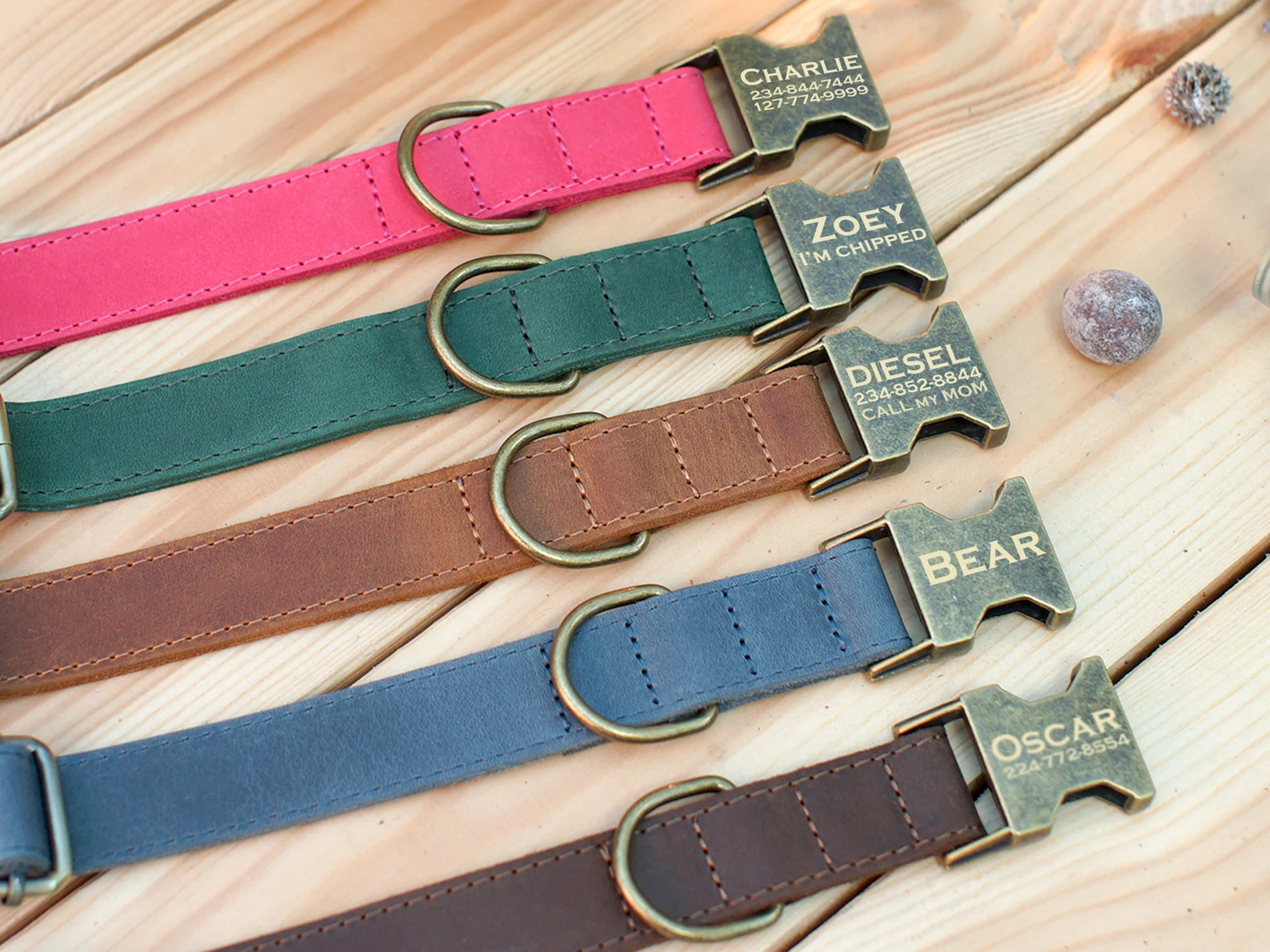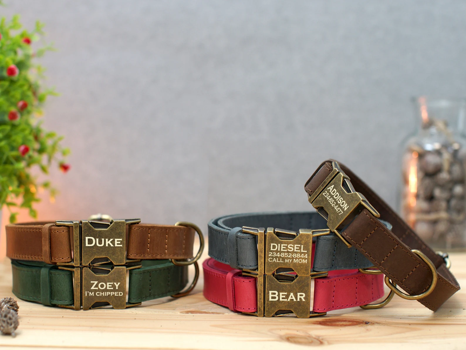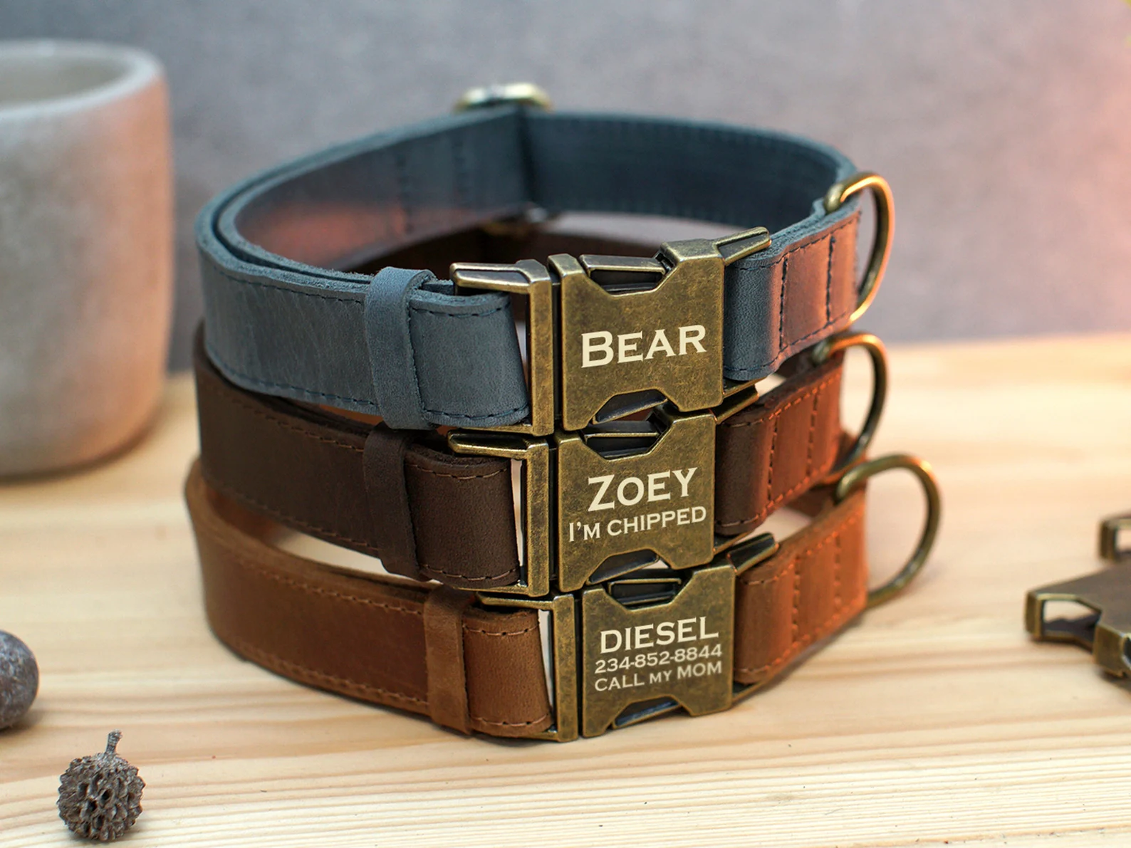 Our Custom Dog Collar - high quality collar made of genuine leather. All hardware for this collar are specially designed for the highest quality standards. You can easily adjust the collar for dogs.
